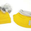 Komplet zimowy - czapka z pomponem golfik podszyty polarem, kolor: MUSZTARDOWY/ZÓŁTY